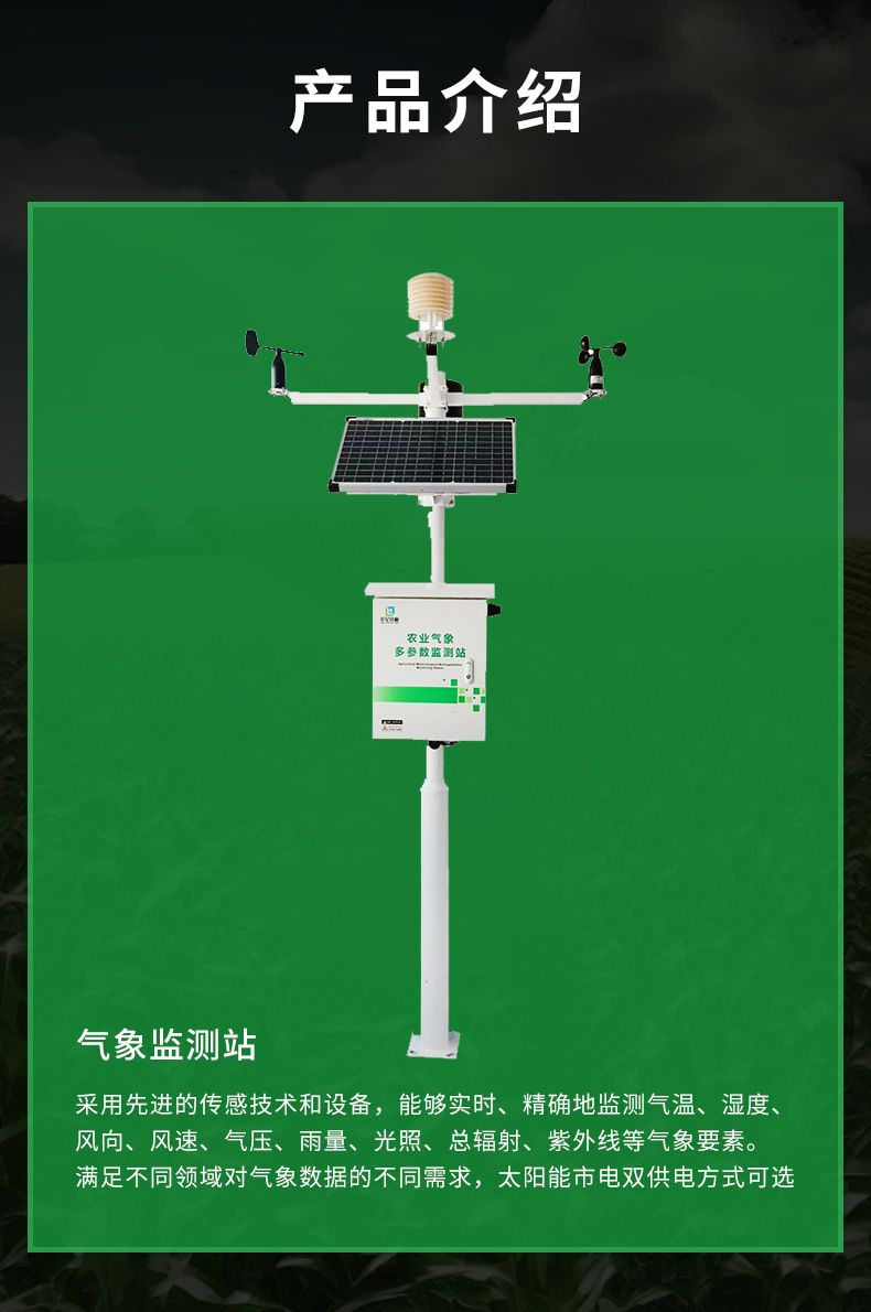 品牌:龙星佳桐 型号:LXQX 测量参数:地温;气温;相对湿度;风速;风向;气压;降水量;总辐射 分辨率:±0.5%RH 准确度:±0.1℃ 规格:定制 空气温度:量程-40℃~80℃ 外形尺寸:1000-5000 mm 空气湿度:量程0~100%RH 风速:量程0~60m/s 风向:量程0~360° 大气压力:量程300~1100hPa 重量:20 kg 产品用途:监测风速风向等气象信息 一、农业气象监测站参数选择