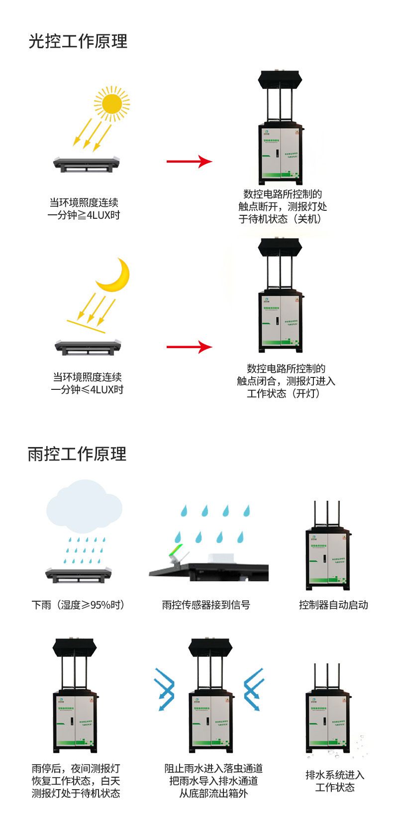 通过灯光诱捕或性信息素吸引害虫,内置高精度摄像头拍摄虫体图像,利用AI算法实时识别害虫种类、数量,并记录虫情动态。 -